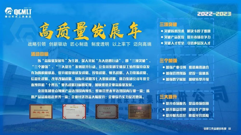 確定2022-2023年為集團“高質(zhì)量發(fā)展年”,發(fā)布了《“高質(zhì)量發(fā)展年”(2022—2023年)實施方案》,明確了“高質(zhì)量發(fā)展年”活動實施內(nèi)容及考核辦法。