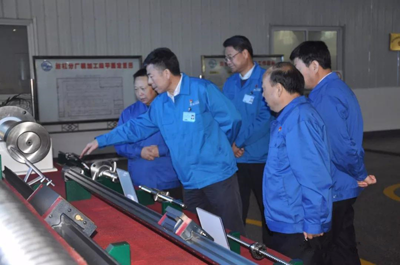在陜西漢江機床有限公司,董事長嚴鑒鉑一行先后深入滾珠絲杠廠、機床廠和螺桿轉(zhuǎn)子生產(chǎn)車間現(xiàn)場了解生產(chǎn)經(jīng)營情況,并在生產(chǎn)現(xiàn)場與員工面對面交流。