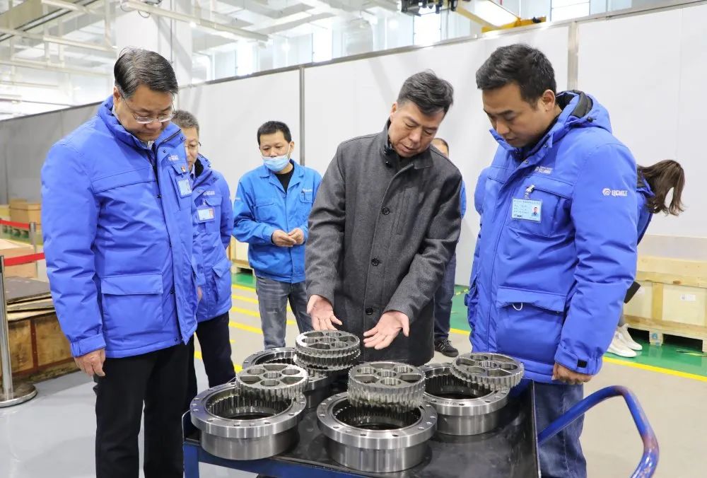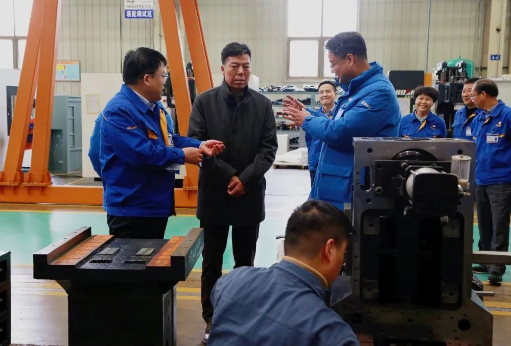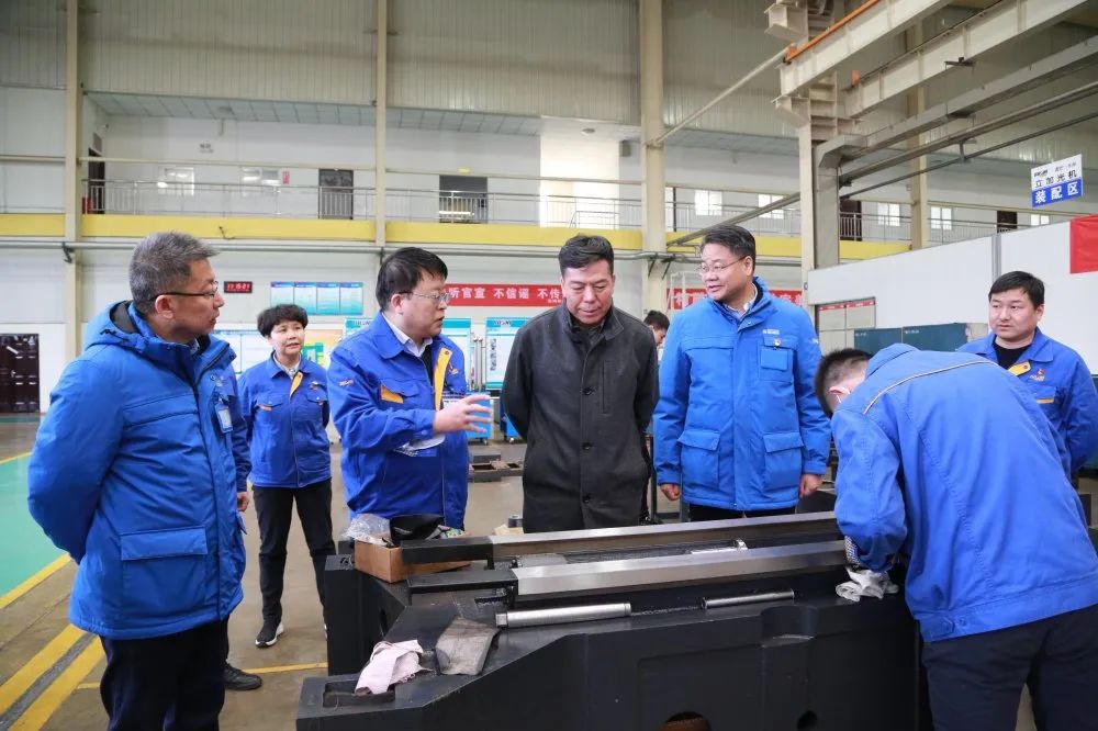 在寶雞機床的整機裝配、數(shù)字化車間,嚴董事長詳細了解企業(yè)一季度生產(chǎn)任務(wù)安排及完成情況,對企業(yè)新產(chǎn)品研發(fā)、智能產(chǎn)線等重點項目進行現(xiàn)場指導(dǎo)。