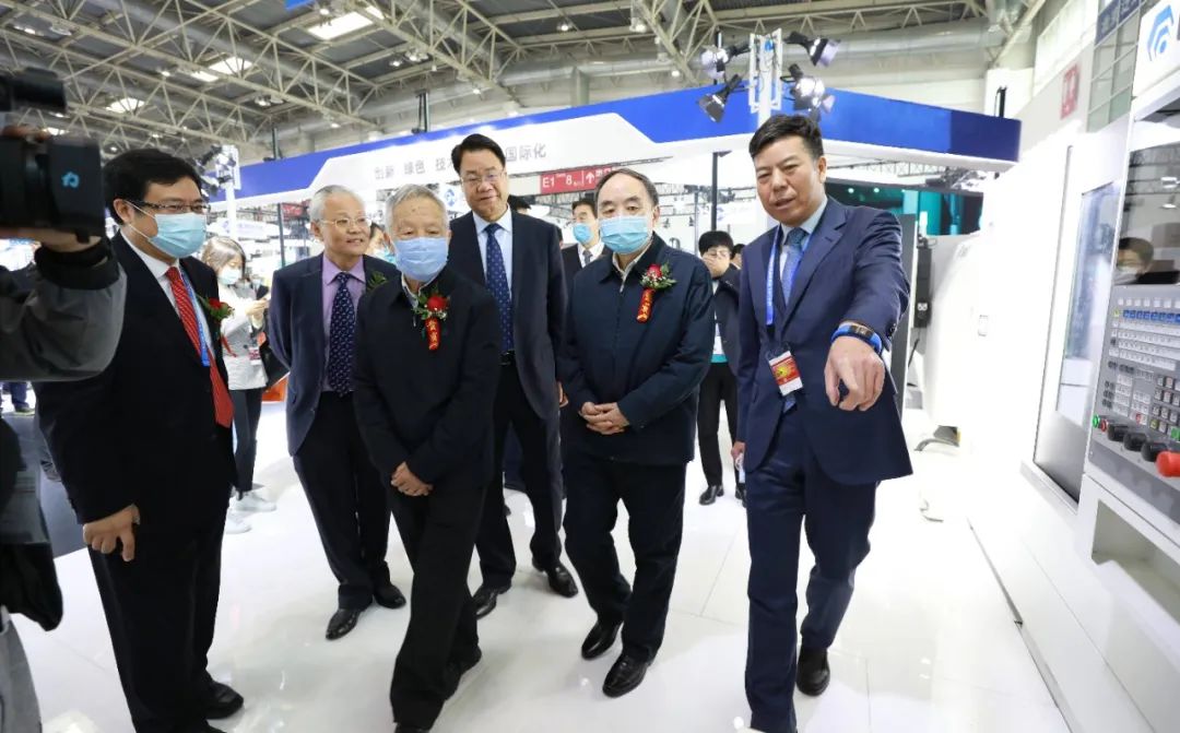 原教育部部長(zhǎng)、中國(guó)工程院原院長(zhǎng)、院士周濟(jì),國(guó)務(wù)院派駐國(guó)有重點(diǎn)大型企業(yè)監(jiān)事會(huì)原主席賈成炳,中國(guó)機(jī)床工具工業(yè)協(xié)會(huì)秘書長(zhǎng)王黎明蒞臨公司展位。集團(tuán)黨委書記、董事長(zhǎng)嚴(yán)鑒鉑介紹集團(tuán)智能機(jī)床產(chǎn)品相關(guān)情況。